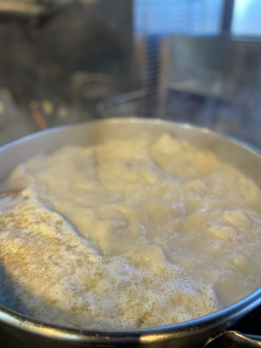 オリジナル鴨豚骨スープ 2026.02.20 店主のつぶやき 炊き始めて30時間の写真36時間かけて豚から取るスープは終了今は鴨からスープ取ってます 眠い寝かせて落ち着かせた豚骨スープを徐々に合わせます骨が溶け出で骨粉が大量に出ますが濾してサラッとしたスープにします本日午後完成予定仕込み終わったら飲みに行こうかなぁ一晩寝かせて明日試食して22日猫の日よりとんこつラーメンの予定です