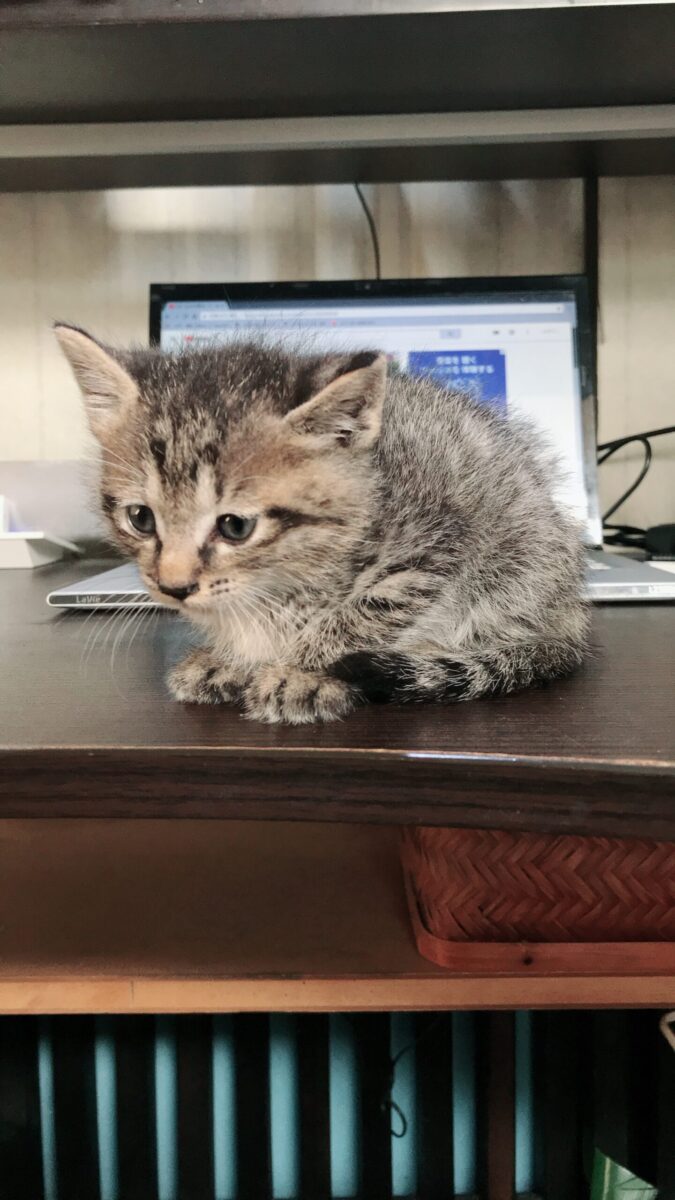 目の前を尻尾を立てて得意げに横切り