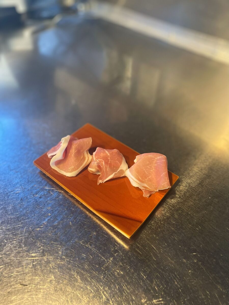 発酵感がたまらない 2025.11.22 店主のつぶやき 生ハムの提供を始めて八ヶ岳生ハムのプロシュッテリアモリモトさんから早速ご連絡いただき15ヶ月でお渡ししましたが熟成は進むので24ヶ月熟成で大丈夫ですとのこと昨日は塩ラーメンと生ハム試食しました美味しかったです そのうちやります生ハムを浸したところのスープを飲むと自分的には発酵感も相まってクセになりそうです
